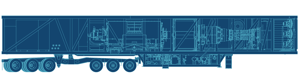 Our 15MW package requires only two trailers for transport and operations while its innovative design allows for greater flexibility. By eliminating the need for a crane or forklift onsite during mobilization and demobilization, Dynamis has the unrivaled capability of deployment and mobilization for reliable power in as little as 14 hours. This package is well-suited for anything from modular data center builds to oil and gas production and frac pad solutions.