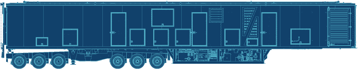 Our 24MW turbine package offers all the same features as the 35MW package while utilizing GE’s LM2500 base gas turbine. Both packages incorporate Dynamis’ auto-leveling and positioning systems, which use hydraulic landing legs to allow for more precise maneuvering during initial mobilization. All Balance of Plant (BOP) equipment is integrated into the truss structure of the main trailer, and the air handling trailer uses hydraulic positioning with our state-of-the-art intake and exhaust systems.